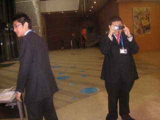 ↑会場の外で呼び込みをするゼミ生たち。それにしても・・さ、さむい!!